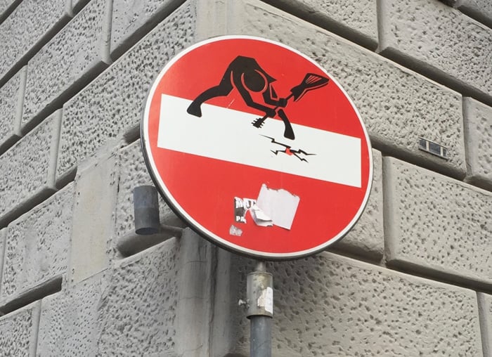Vienna has a canal where graffiti is legal, and the artists repaint the walls every now and then. Brussels has a comic strip walk with walls depicting comic book characters. Florence has street signs decorated with funny figures.