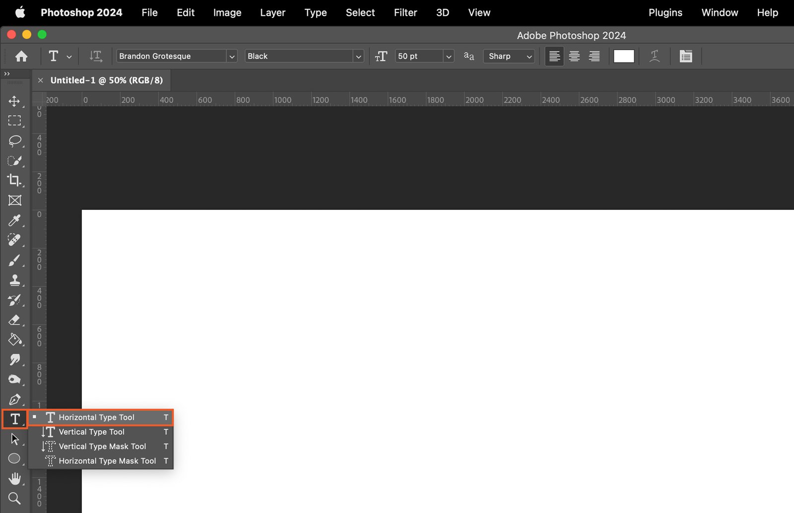 Launch Photoshop. In the toolbar on the left, click the “T” icon to select the Text Tool. This tool allows you to create and edit text layers.