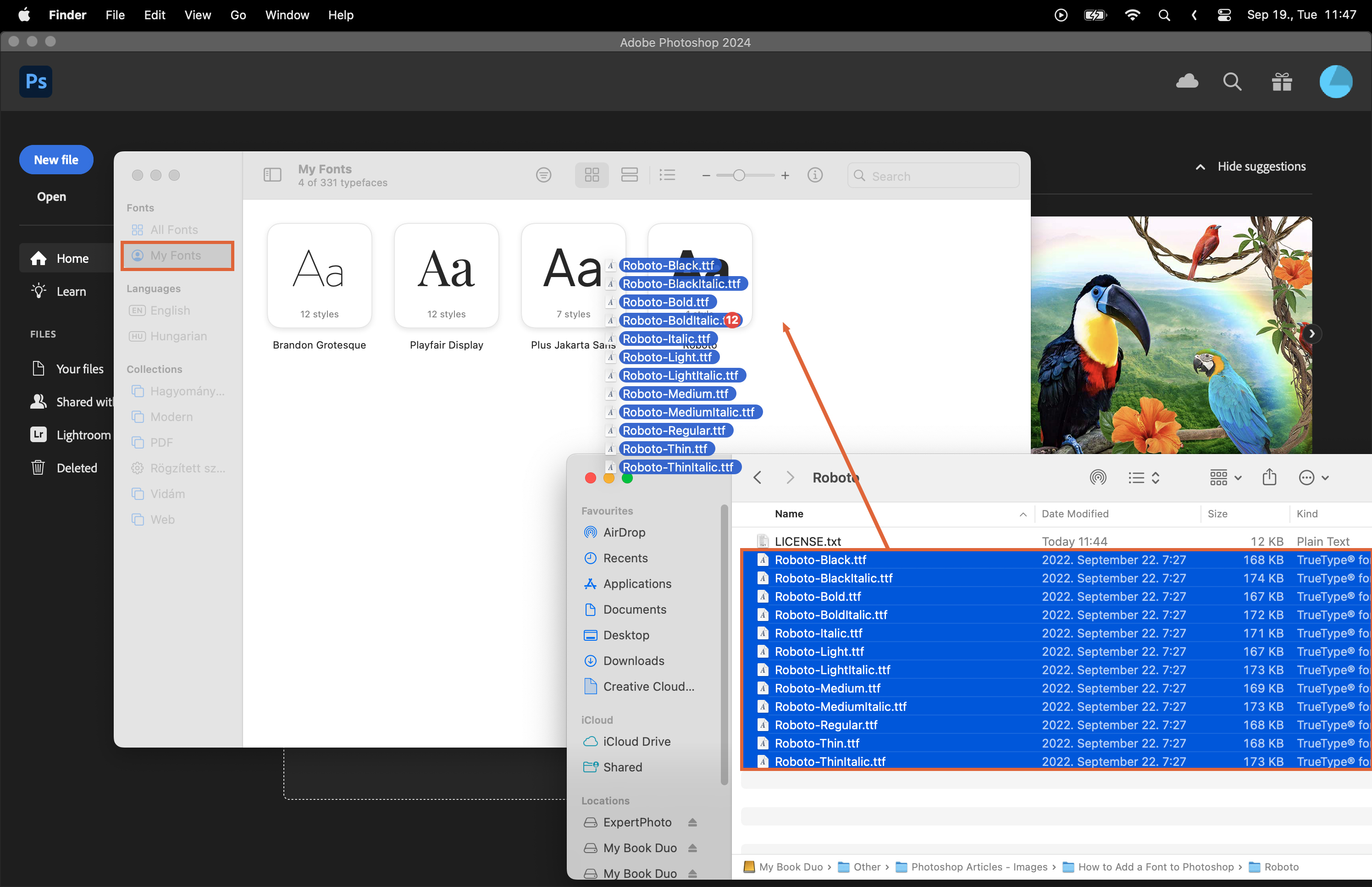 To install multiple font styles, simply drag and drop the fonts into the My Fonts section.