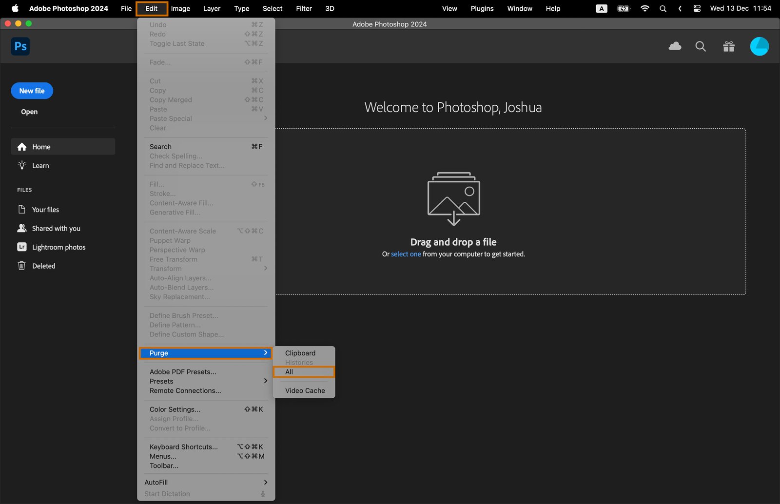 Step 9.1 Clearing Photoshop Cache