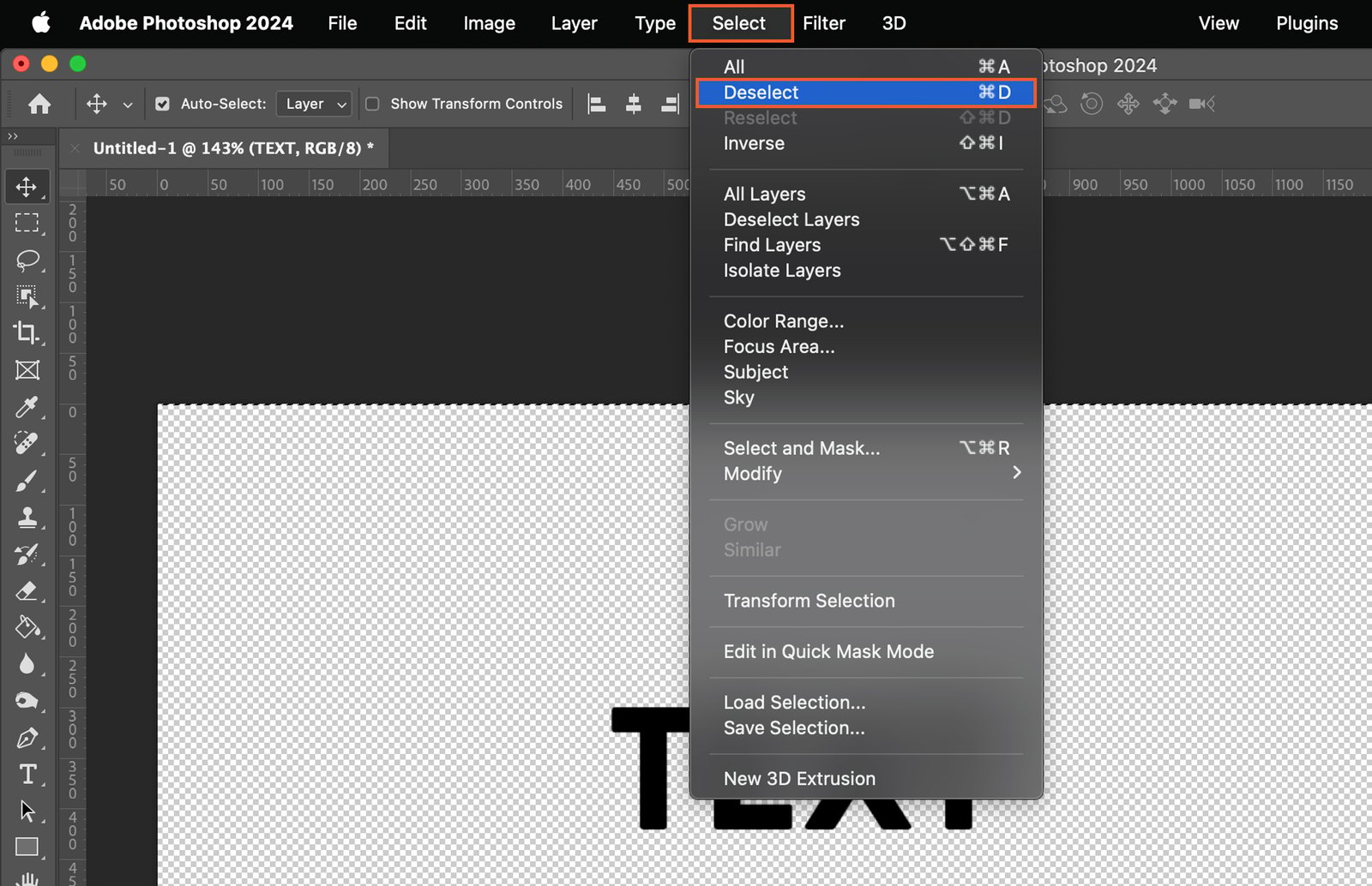 Once your object is centered, deselect it by clicking “Select” in the top menu, then “Deselect.”