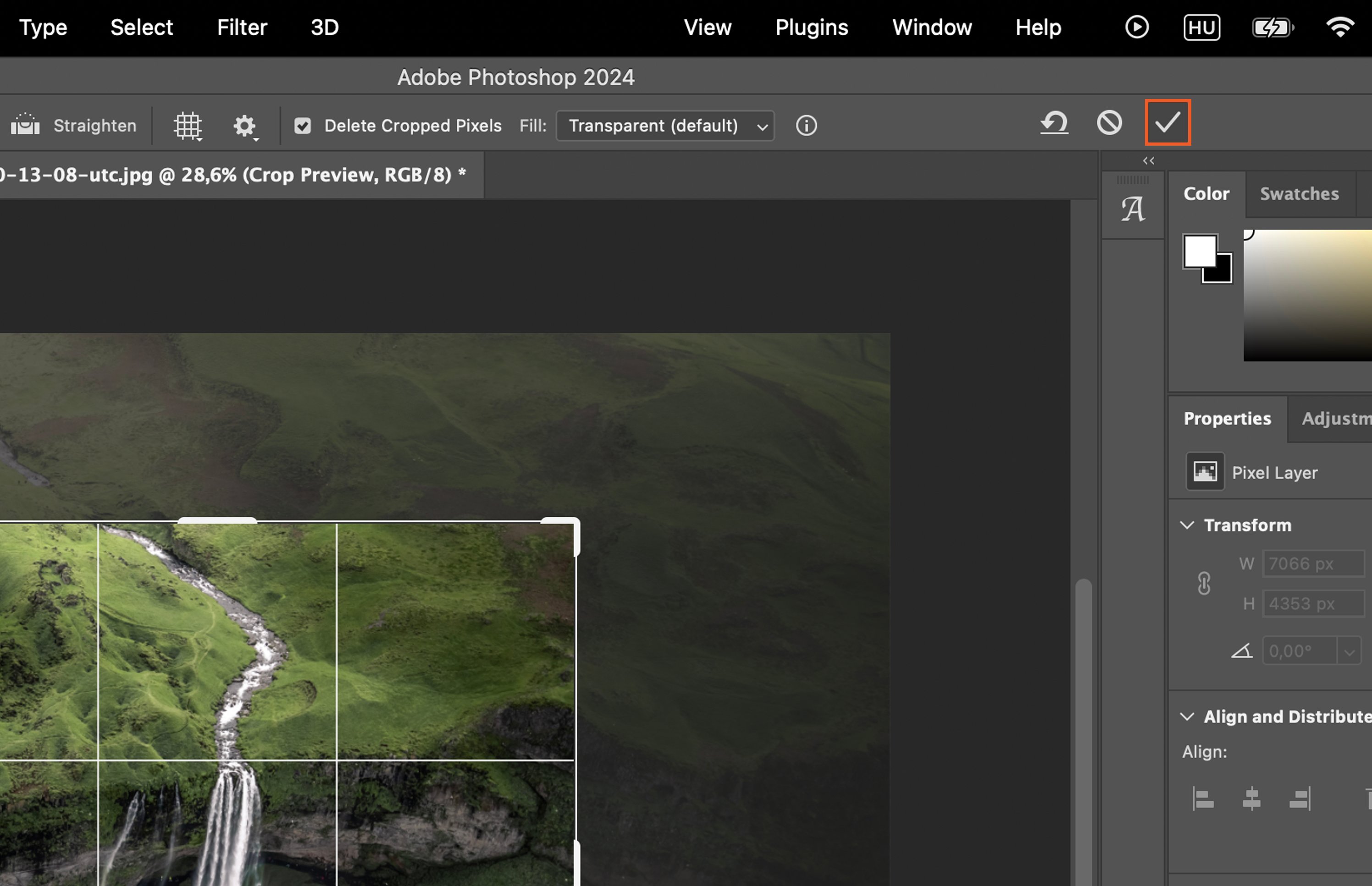 To apply the crop, navigate to the top of the screen and click the checkmark icon.