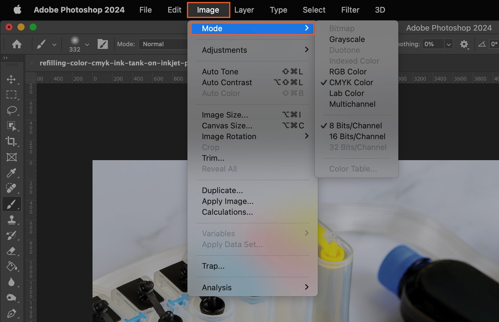 Under the “Image” menu, you’ll find the “Mode” option. This option allows you to choose the color mode of your image.