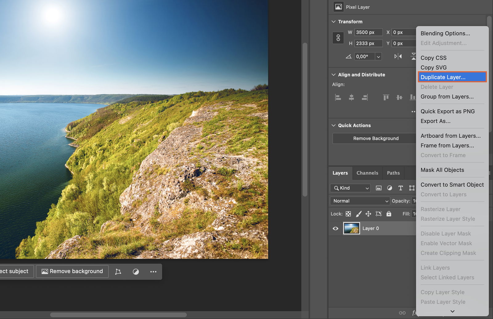 Duplicate your image be right clicking on the layer and select “Duplicate Layer’.