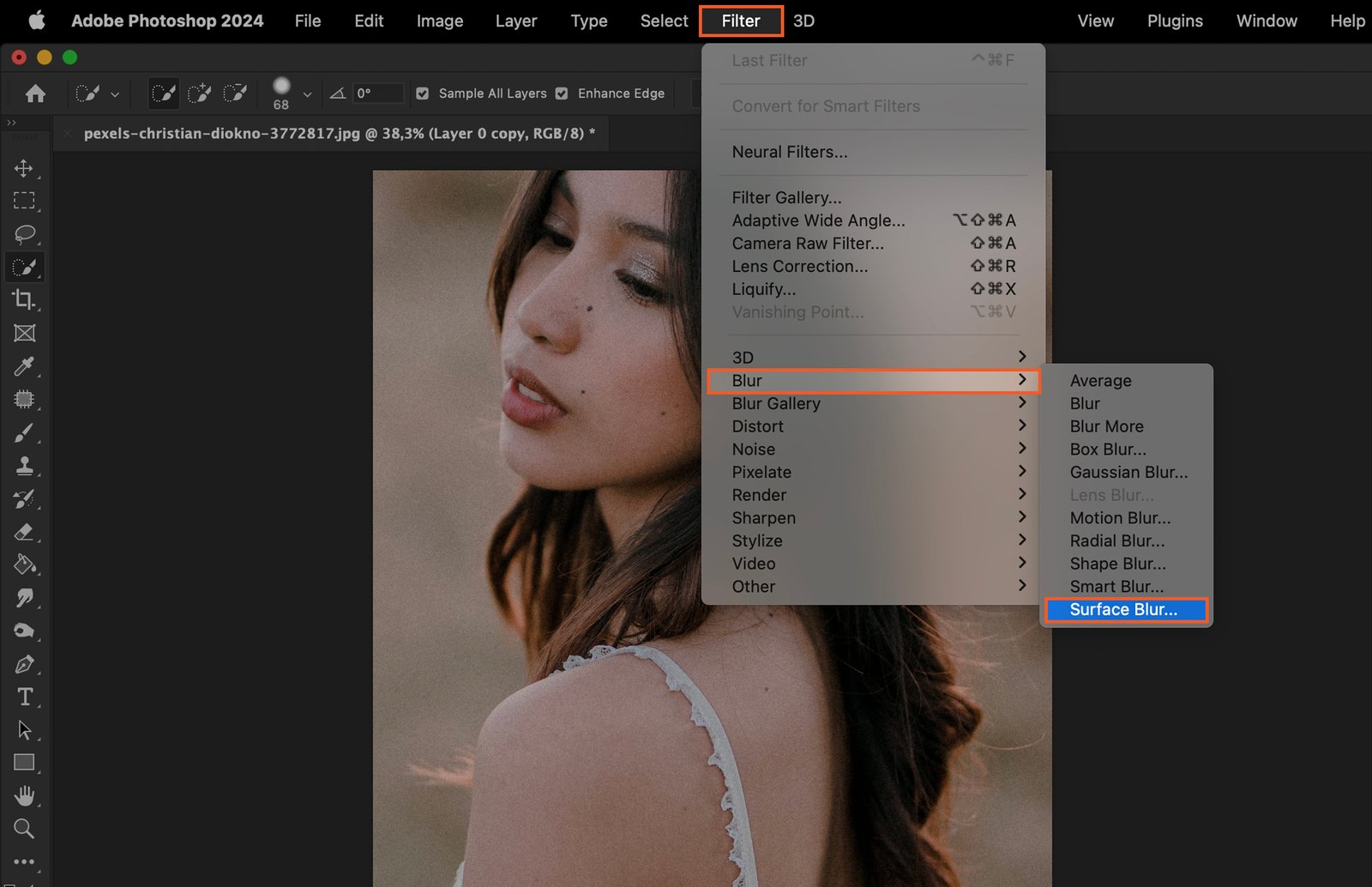 Step 3. Apply Surface Blur Filter