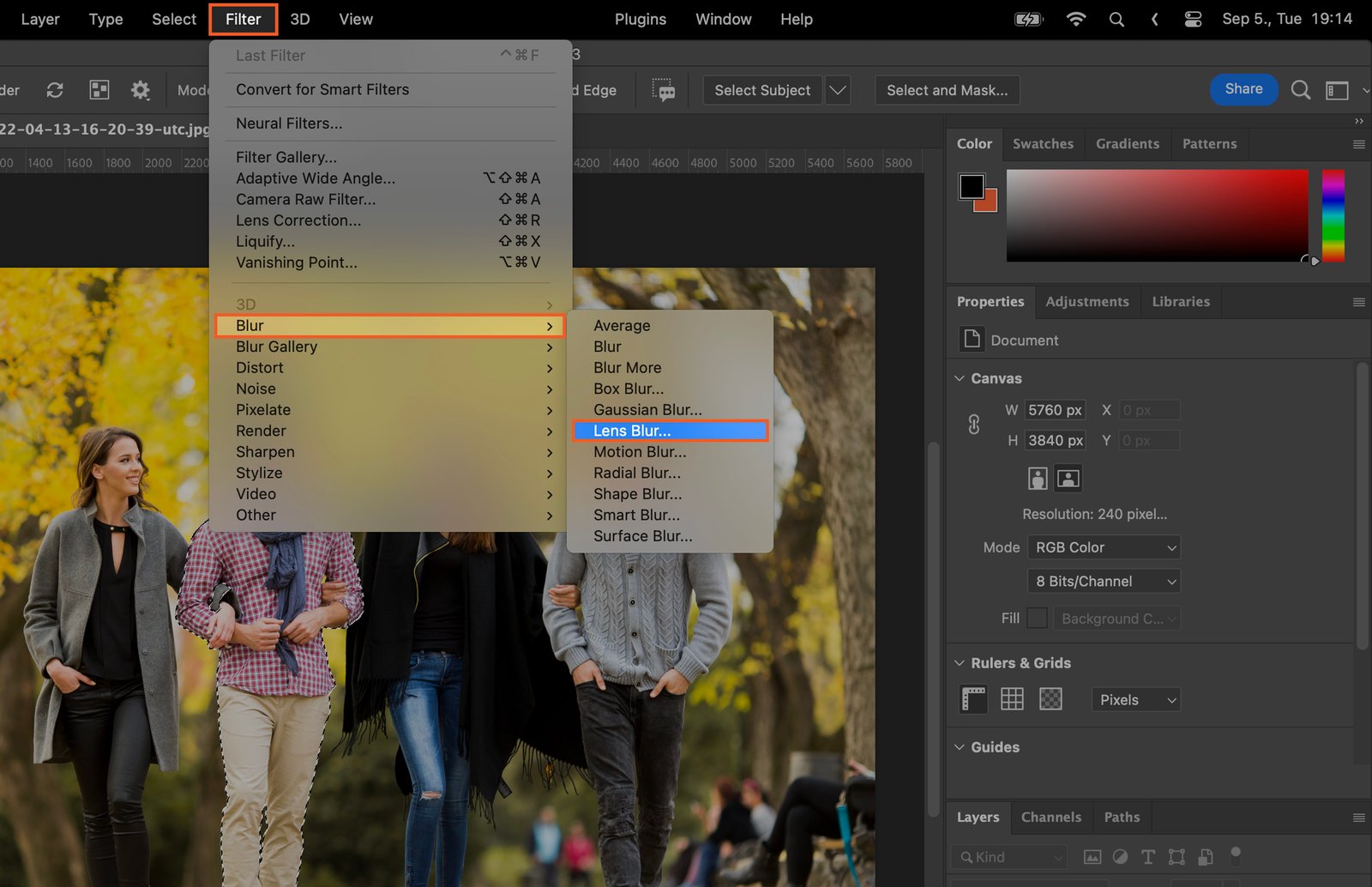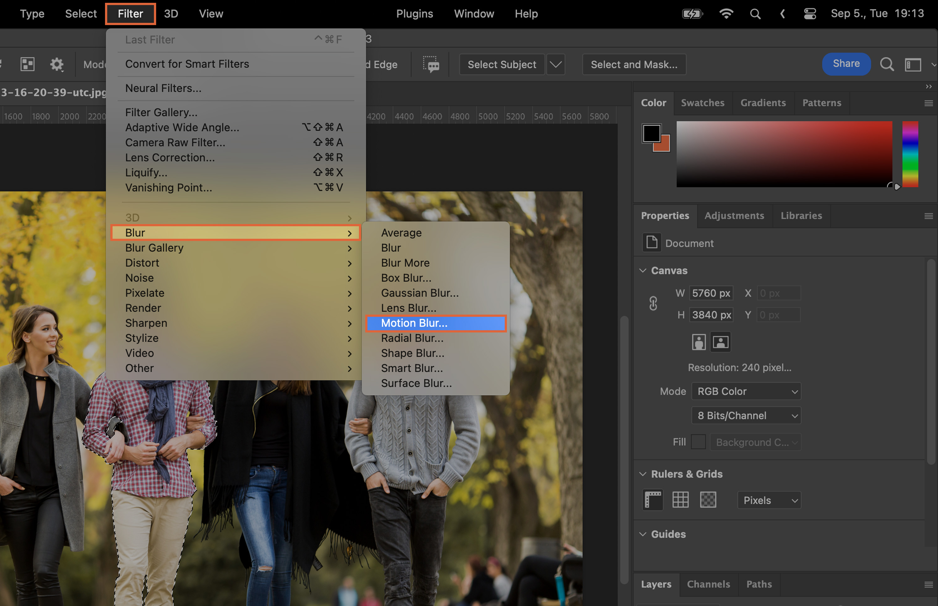 Gaussian Blur is a classic. It gives a general blur effect that’s great for backgrounds. Find it under ‘Filter’, then ‘Blur’.