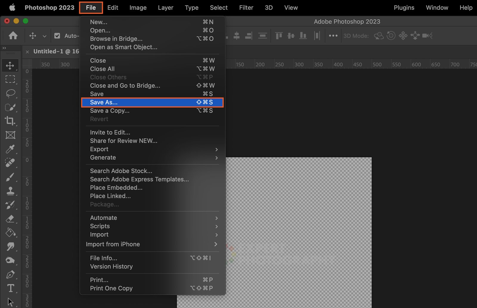 Next, save your watermark as a PNG to maintain its transparency. Go to File > Save As, and select PNG.