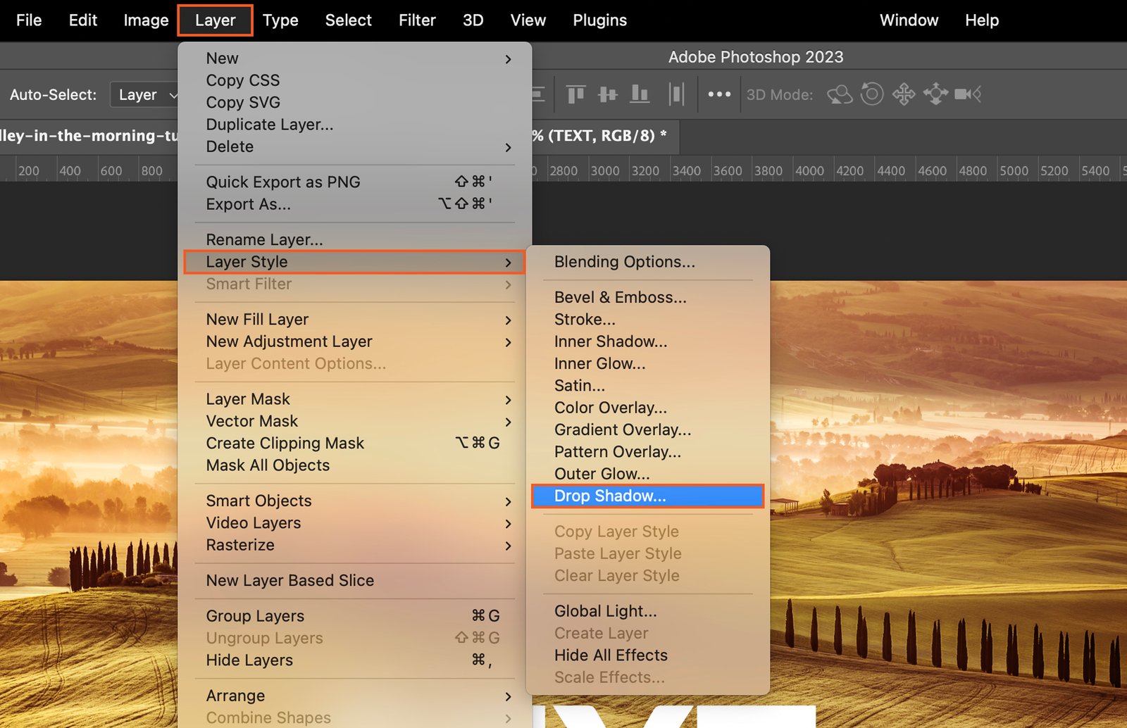 To add a border around your text, choose ‘Stroke’ from the ‘Layer Style’ menu. Adjust the size and color to your liking.