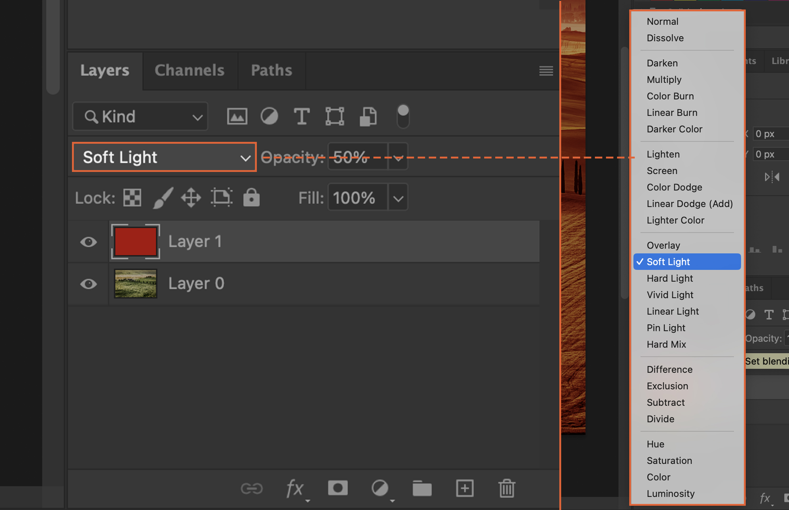 If your overlay is too strong, adjust its opacity. In the ‘Layers’ panel, slide the ‘Opacity’ bar until you’re happy with the look.