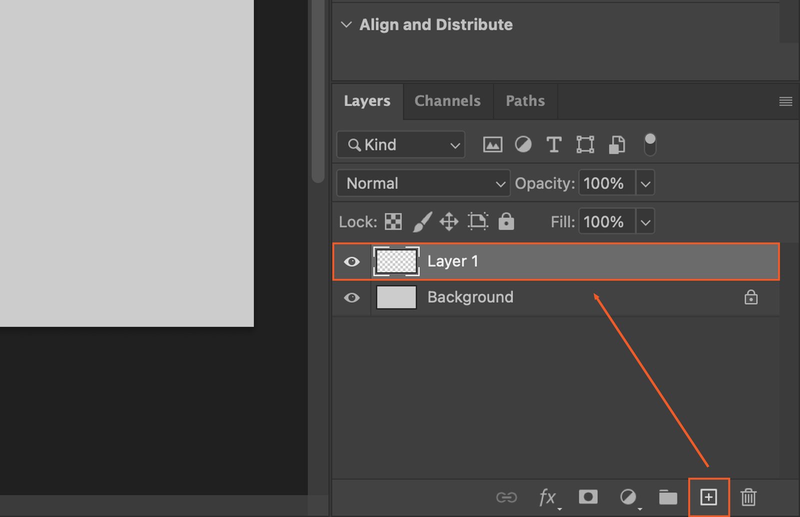 To create a new layer, click on the ‘New Layer’ button at the bottom of the layers panel. You can also use the shortcut ‘Shift + Ctrl + N’.