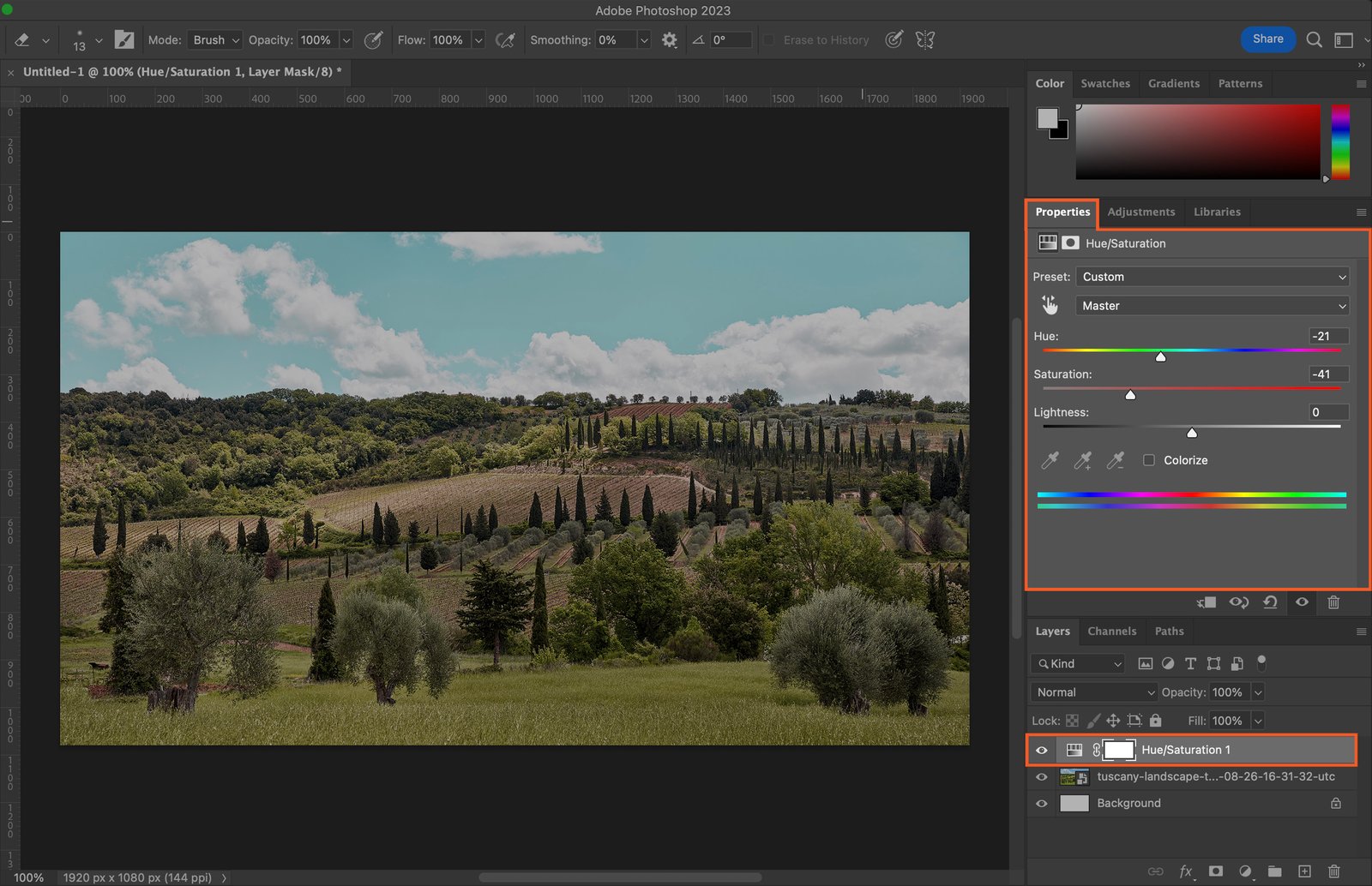 Step 3.3 Hue/Saturation Adjustment