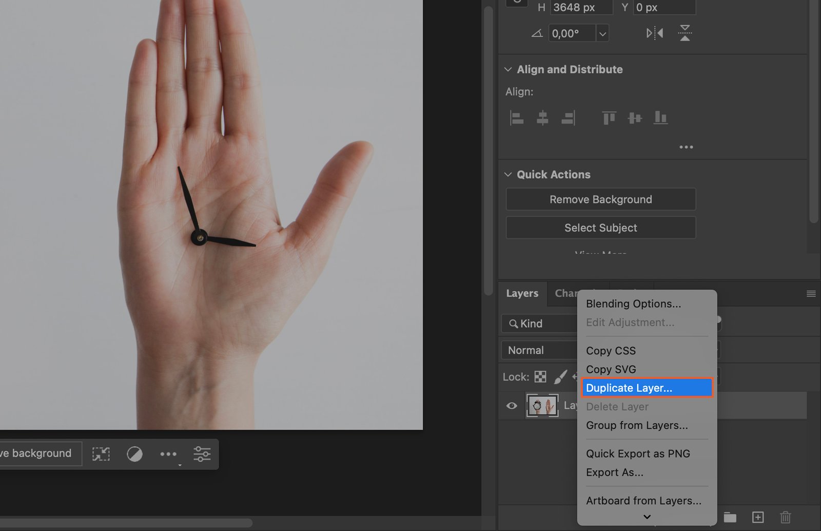 First things first, let’s create a copy of our image layer. This ensures the original stays intact and we can play around with the duplicate. In the Layer Panel, right-click your image layer and select ‘Duplicate Layer’. A new copy of your layer will appear in the Layers Panel.