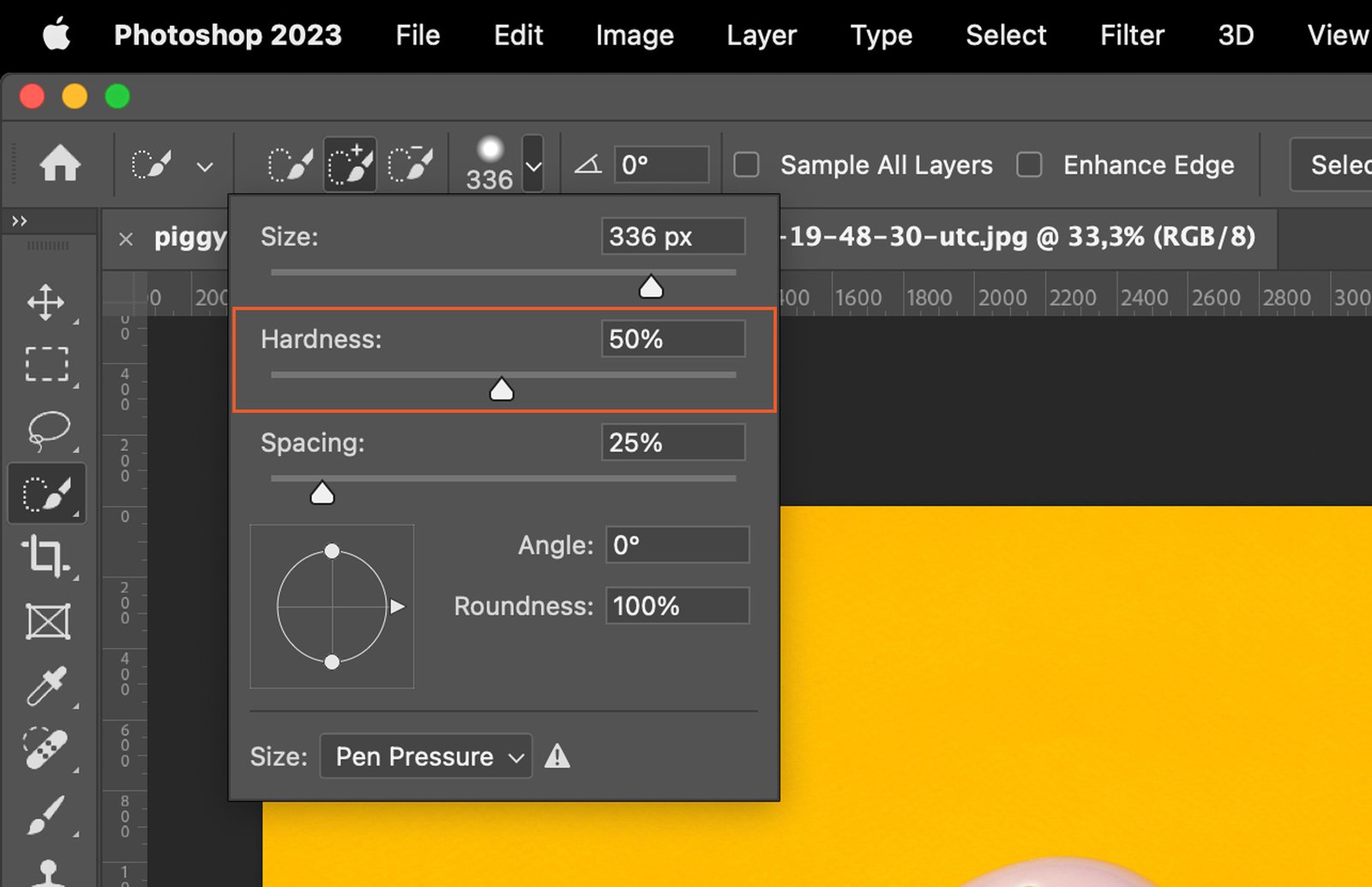 The Hardness option affects the edges of your selection. A higher value creates harder edges, while a lower value makes them softer.