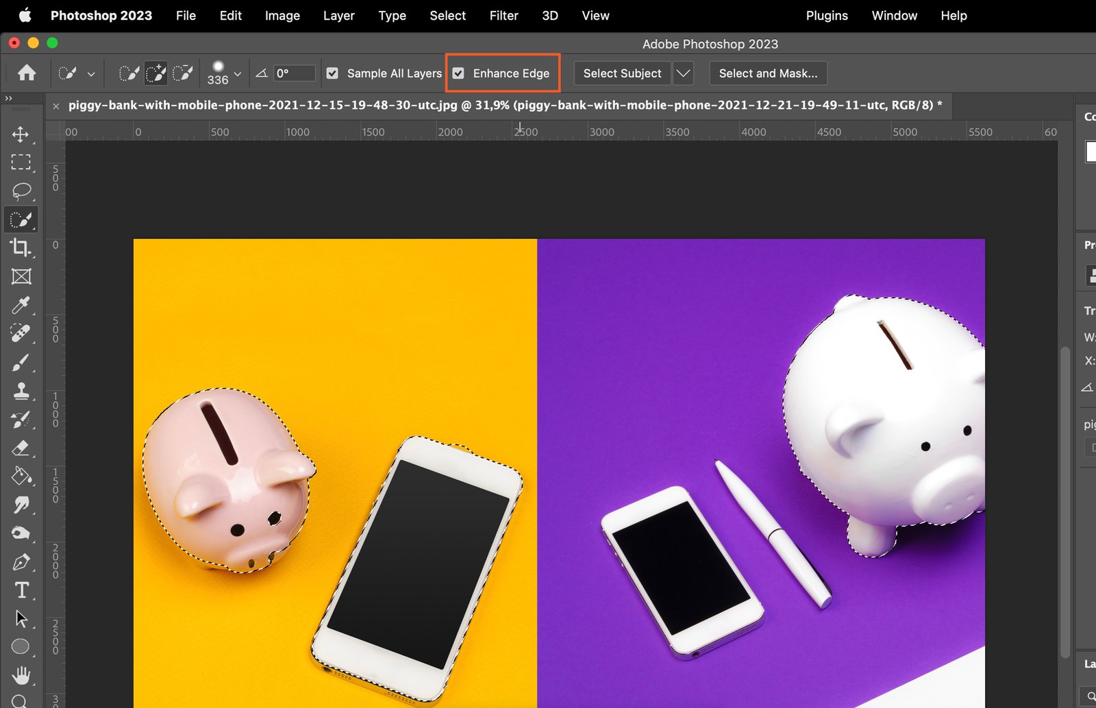 Tick the Enhance Edge box if you want Photoshop to automatically improve the accuracy of your selection.