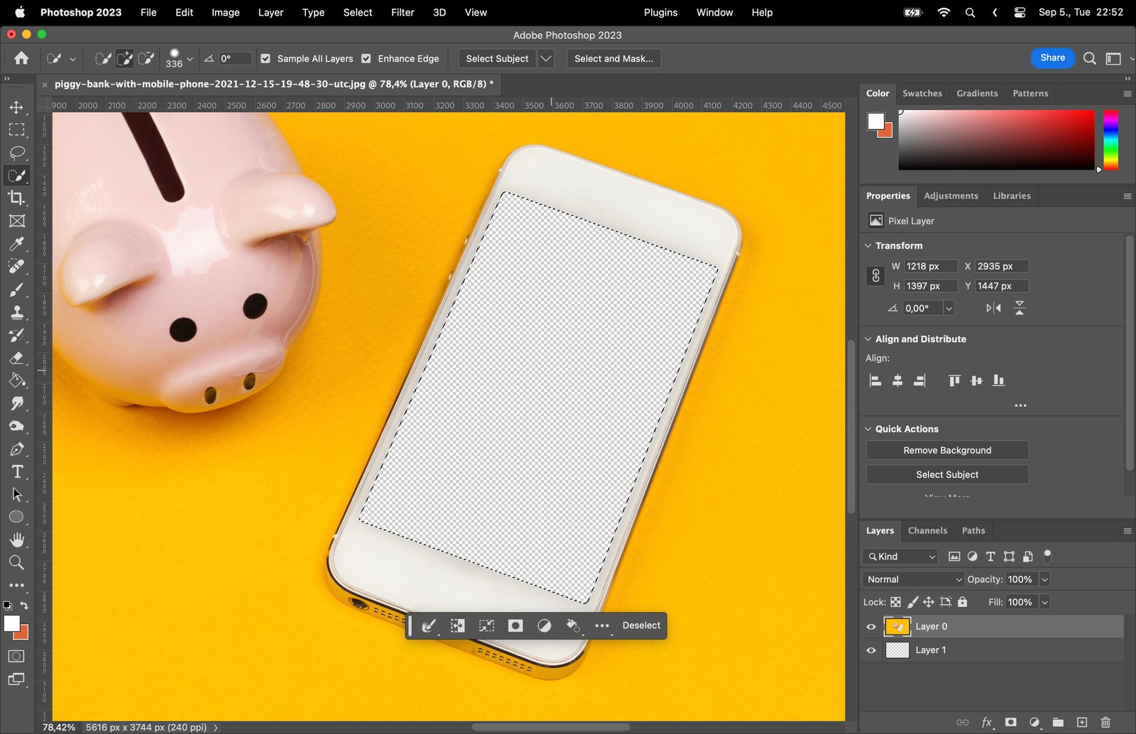 Finally, when you’re done, deselect the selection by clicking anywhere outside it or pressing Ctrl+D (Command+D on Mac).