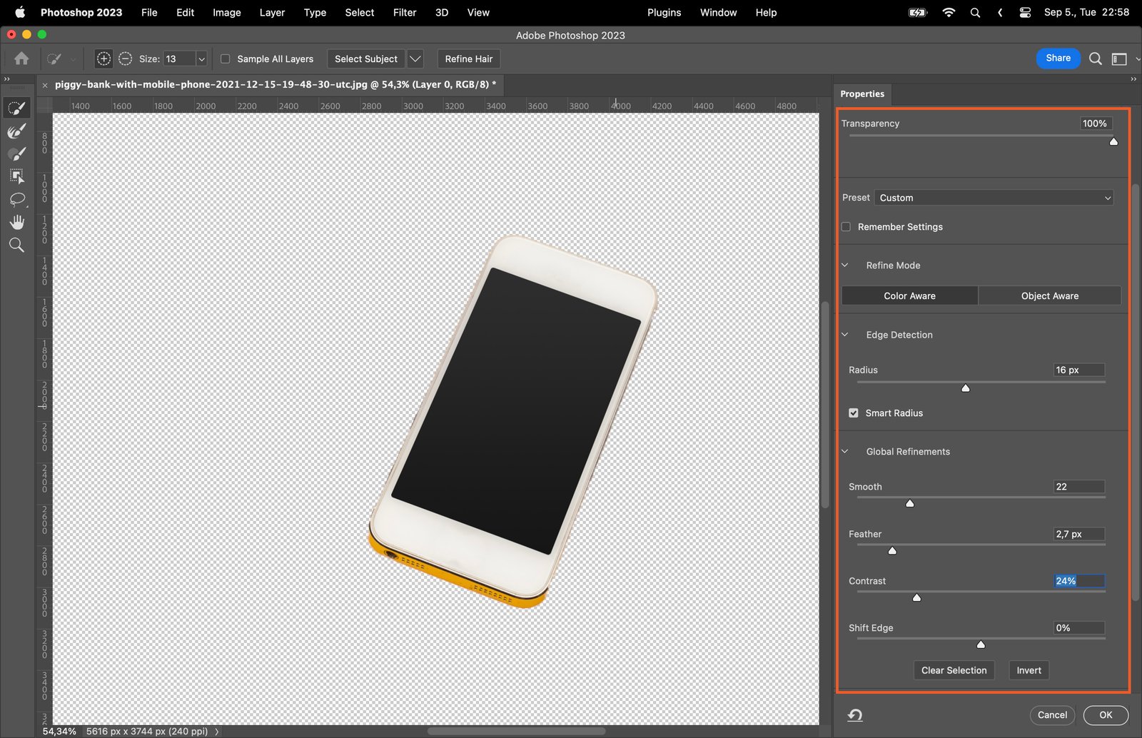 Step 6.1 Using the Select and Mask Tool