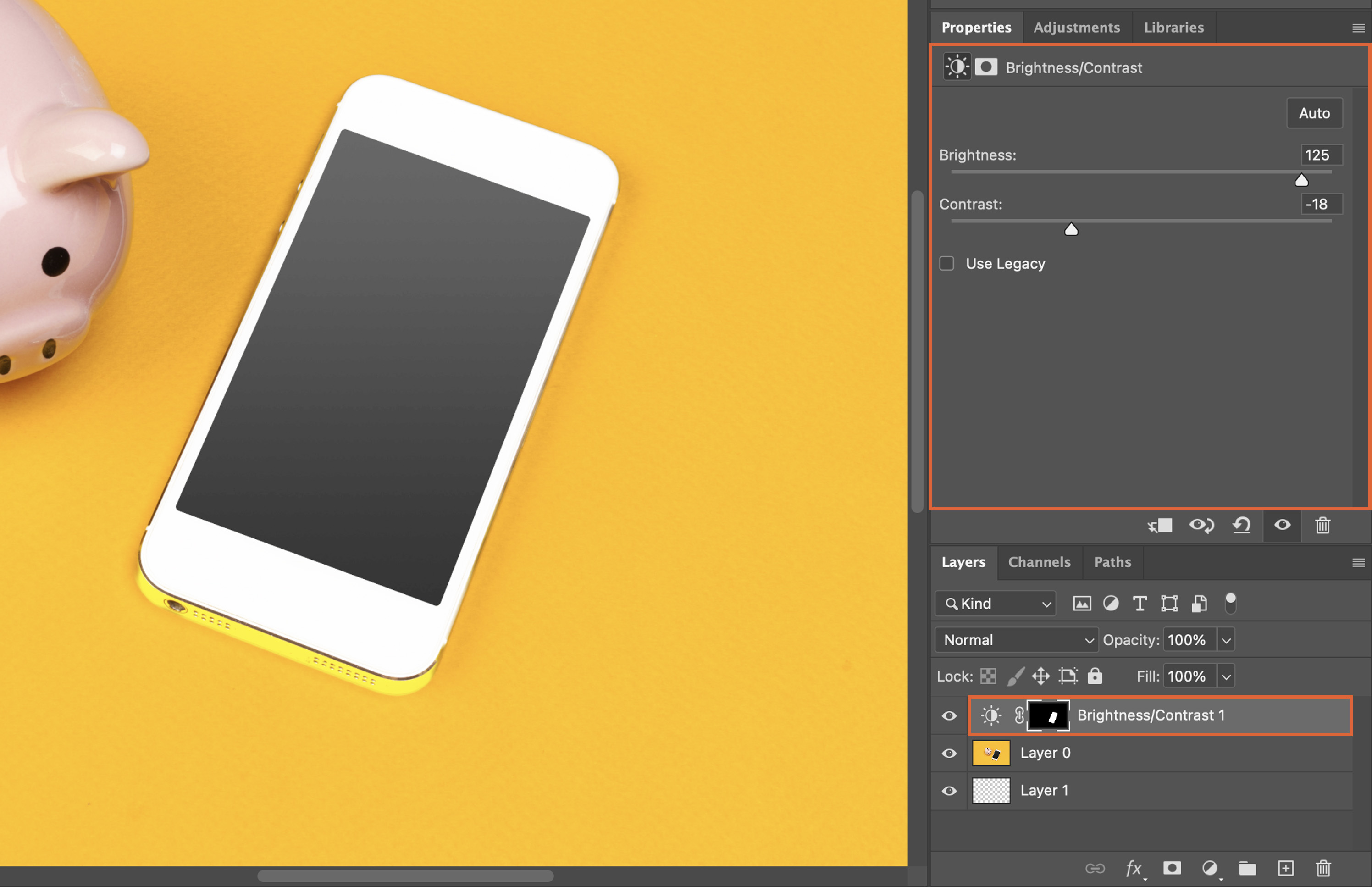 With your selection active, you can adjust brightness, contrast, color balance, and more.