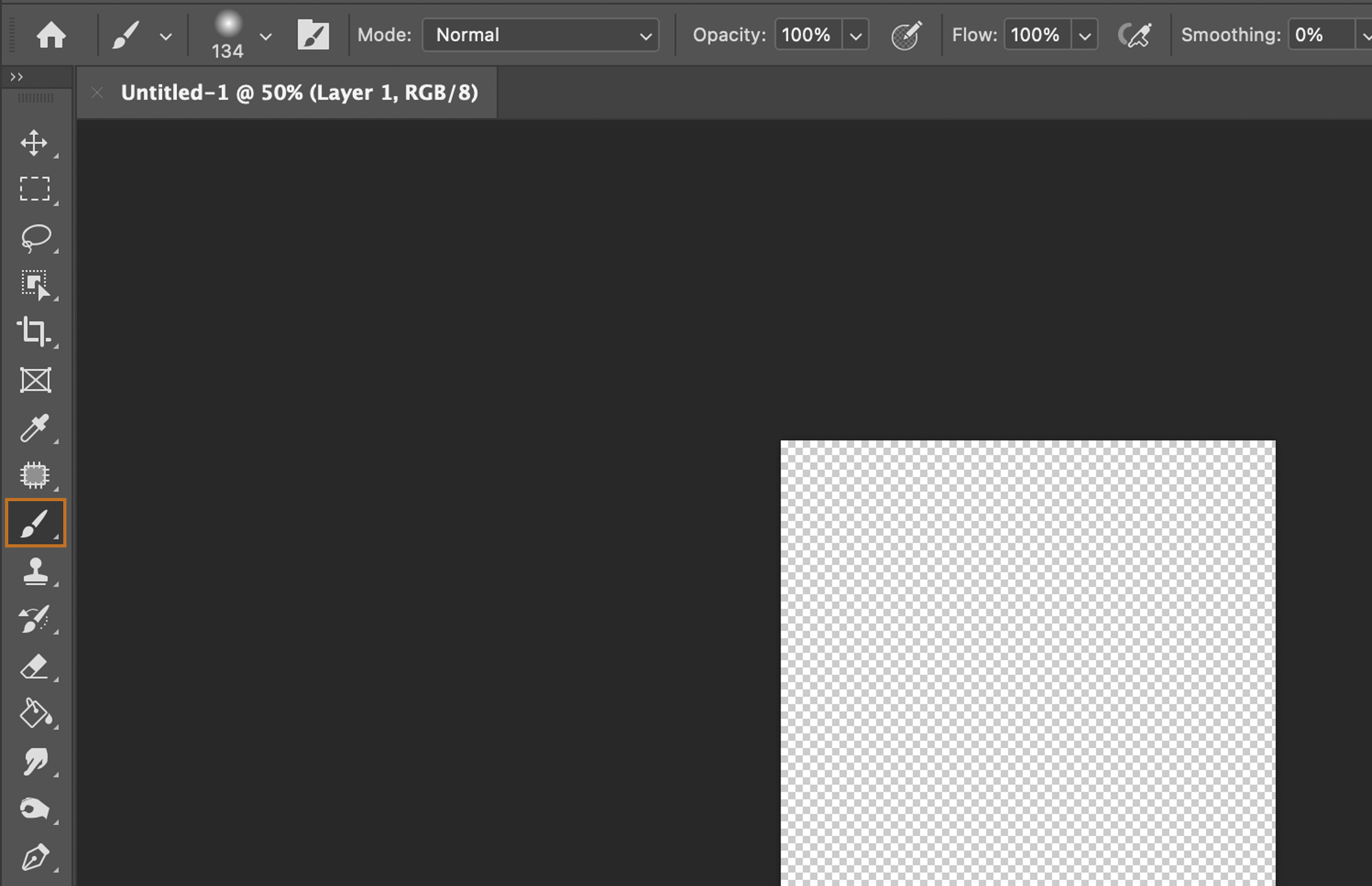 On the left-hand side of your Photoshop interface, find and click on the brush icon to select the Brush Tool.