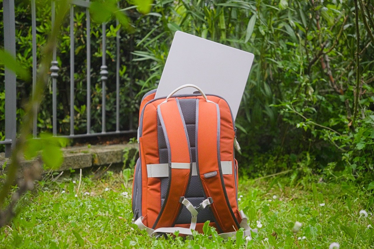 The Camera Pack also has a laptop sleeve on the back that’s padded enough to hold a 16-inch 2022 MacBook, but there isn’t a separate tablet holder.