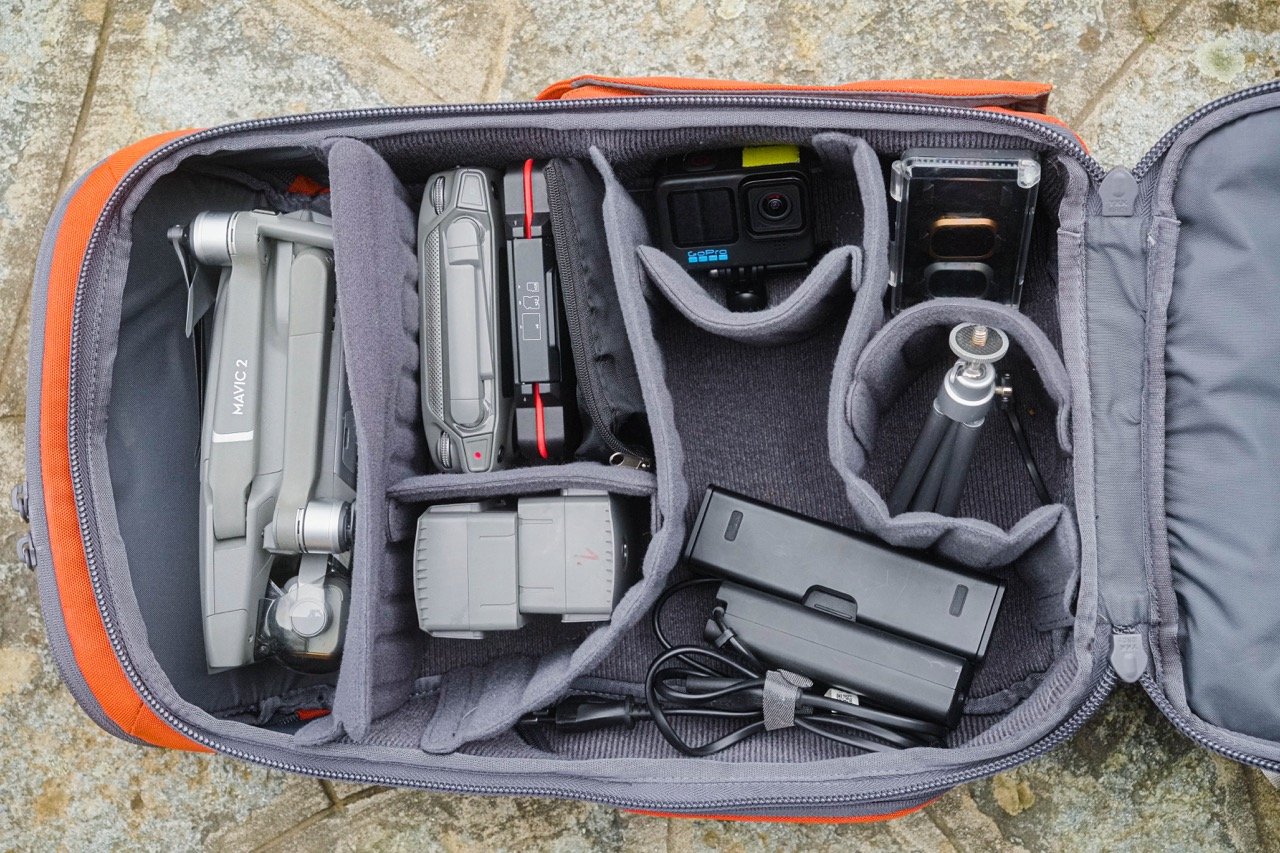 On one shoot, I was able to comfortably fit a DJI Mavic 2 Pro with four extra batteries, a remote, and a charger.