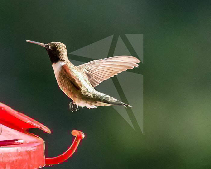 I used the Crop tool to isolate the flying hummingbird. Cropping took my 42.2 MP image from 7952 x 5304 pixels to about 3 MP with just over 1800 pixels on the long side.