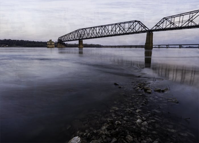The sunrise was a little boring under this bridge. Adding a texture overlay will help the image pop.