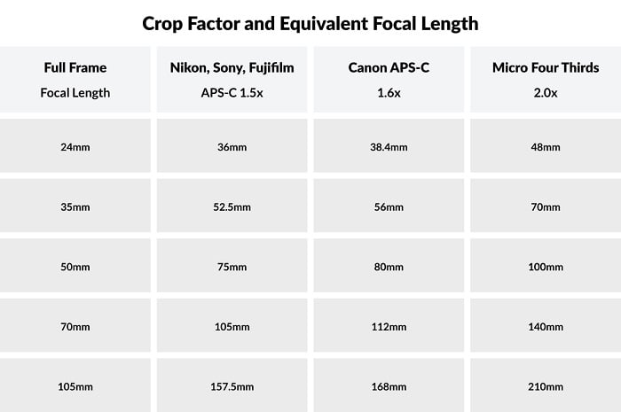 It’s always important to consider crop factor when looking at lenses. The crop factor actually changes the focal length of your lens.