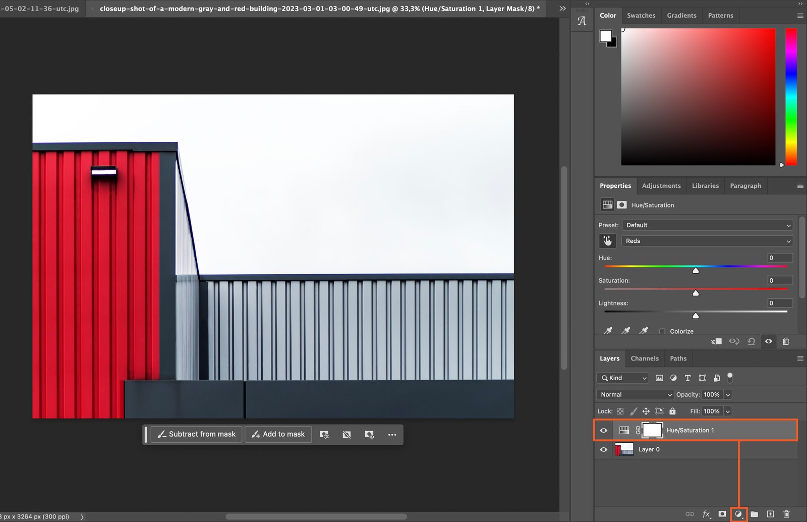 Step 1. Access the Hue & Saturation Adjustment Layer