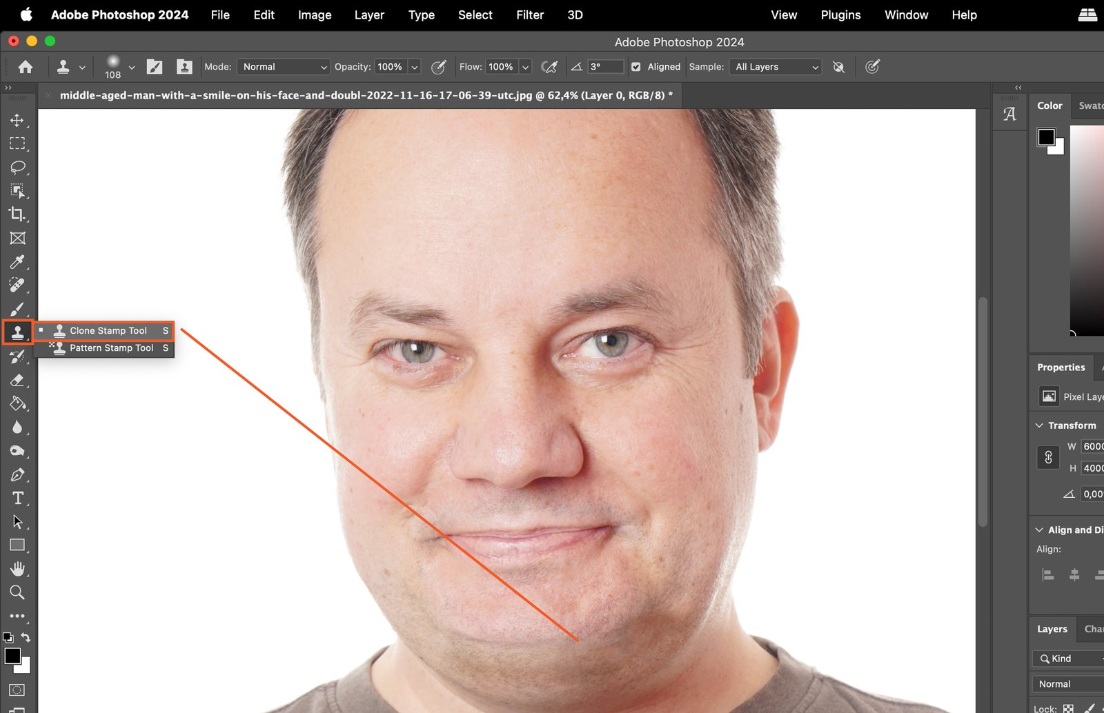 Finally, use the Clone Stamp Tool to sample and replicate the skin texture from the surrounding area. Apply it to the edited chin to make it look natural. You can use the ‘Burn Tool’ to create new shadows to make the chin more natural.