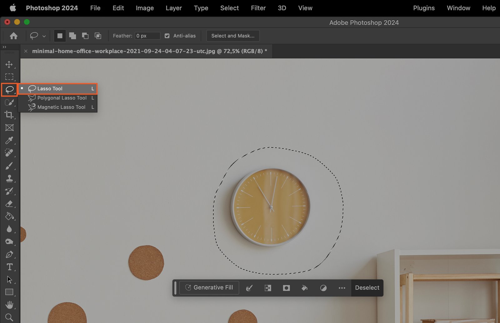 The Lasso Tool allows you to draw a freehand selection around the object. Simply click and drag around the object to select it.