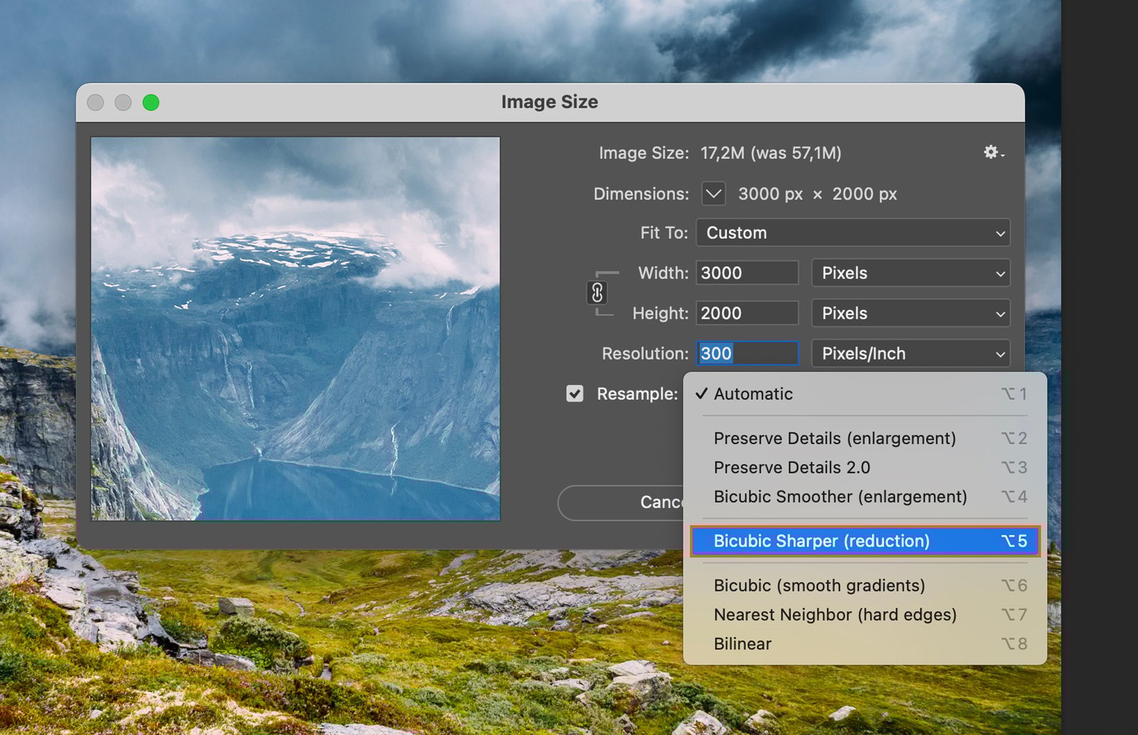 For images with gradients, choose the “Bicubic” option. This maintains the smoothness of gradient colors during resizing.