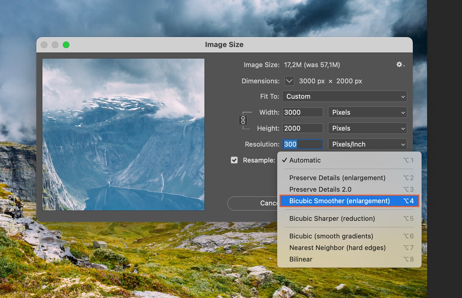 If you’re enlarging your image, choose the “Bicubic Smoother” option. This helps to smooth out any pixelation that might occur during enlargement.