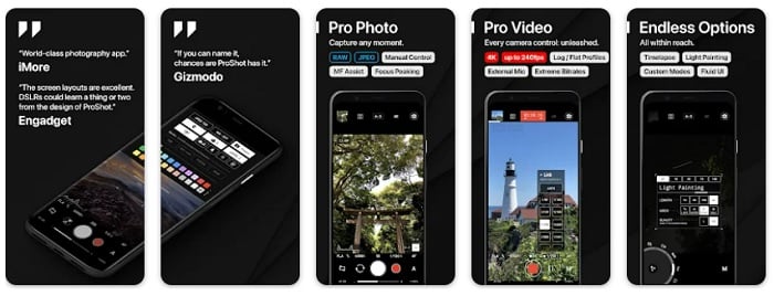 ProShot is one of the best all-round camera apps for photographers. With a wide range of creative tools, you can shoot anything from street photography to long exposures. The apps also has specialist tools for 4K time-lapse photography.