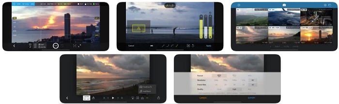 It’s also possible to add text and animated elements to your footage. The app also has blending modes and overlays. You also have a good selection of quick-apply filters and effects for simple edits.
