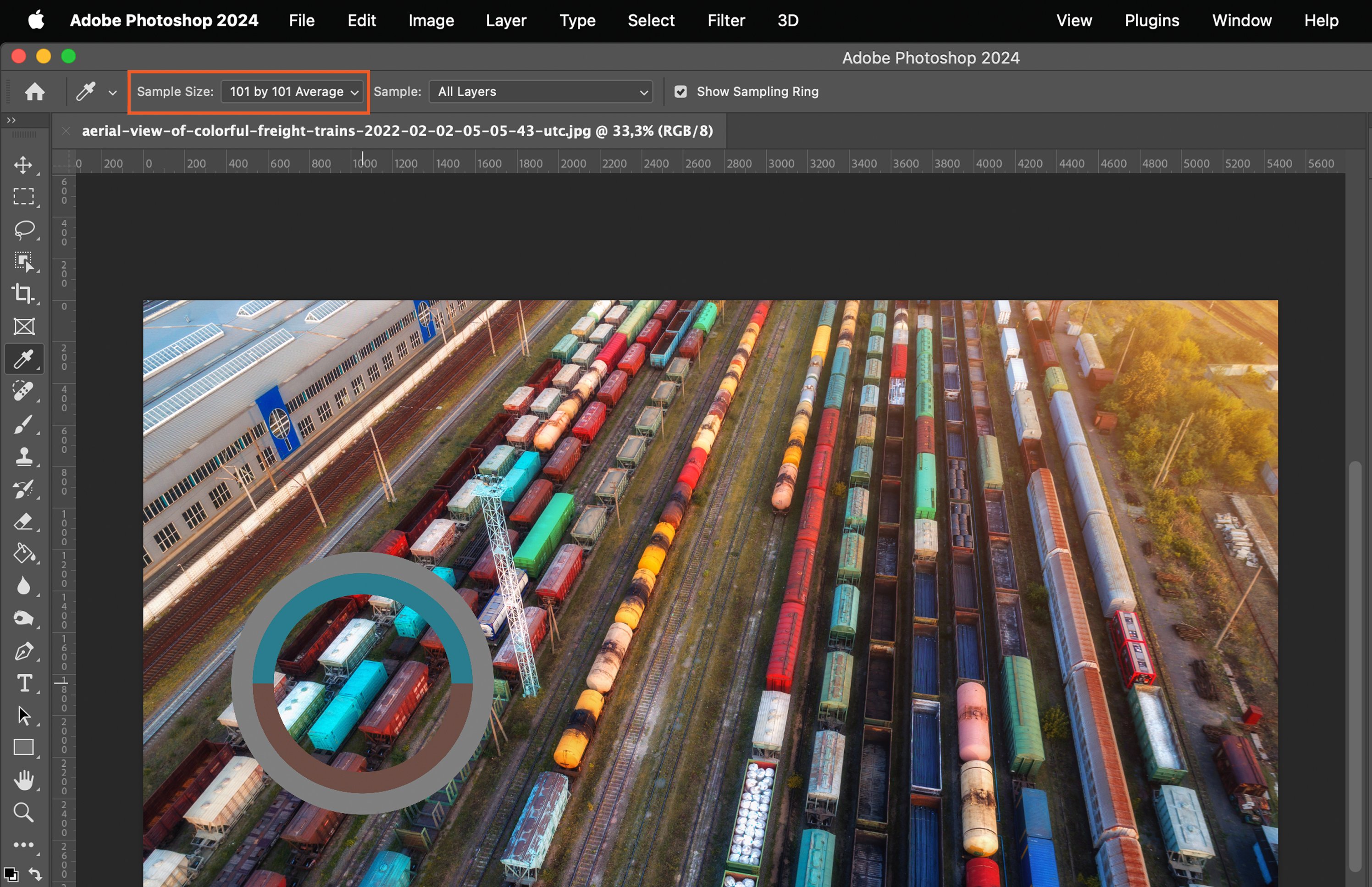 Once you select the Eyedropper Tool, the options bar at the top of the screen will change to reflect its unique settings.