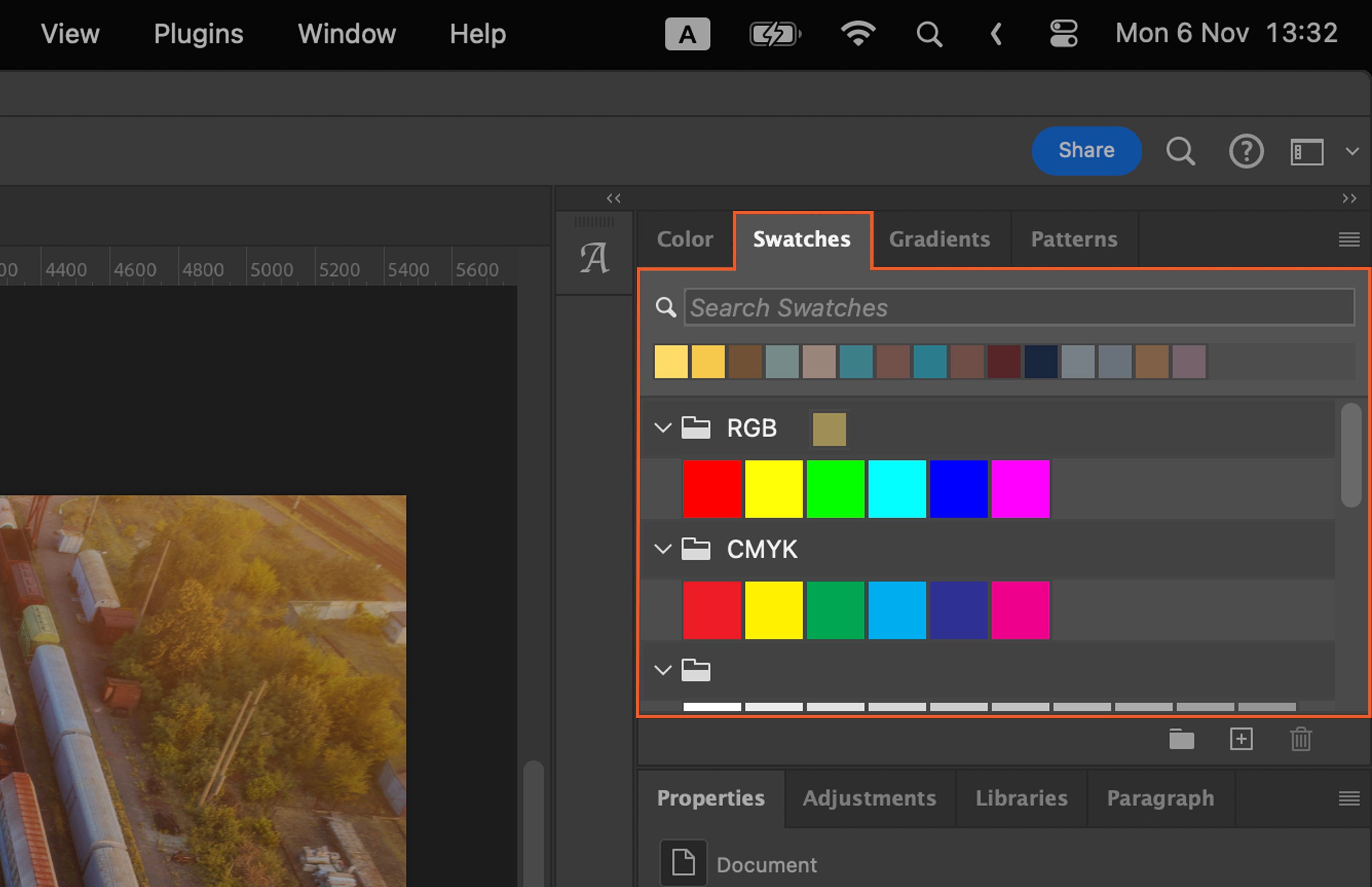 To save a selected color for future use, click on the color swatch in the Color Picker window and add it to your Swatches panel.