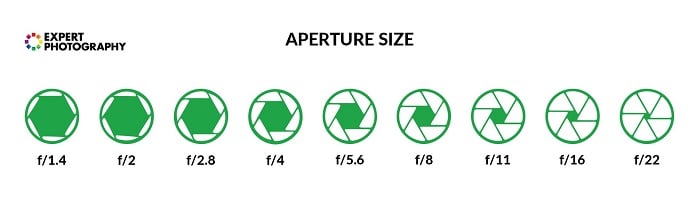 Rather confusingly, a smaller f-stop number signifies a wider aperture and a larger number signifies a narrower aperture. For example, f/22 is narrow and f/2 is wide.